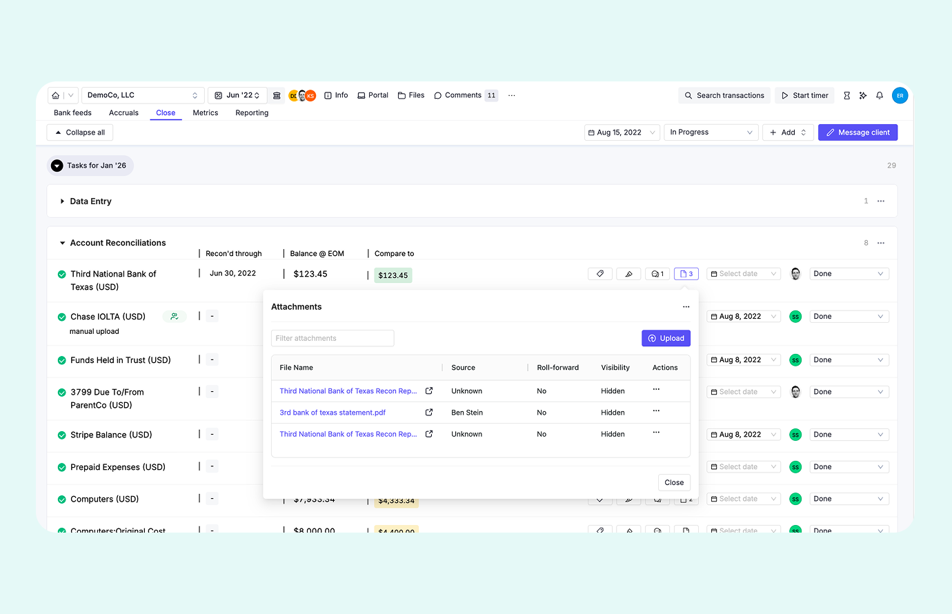 Attach documents like workpapers and bank statement that support reconciliation and audits directly to tasks.