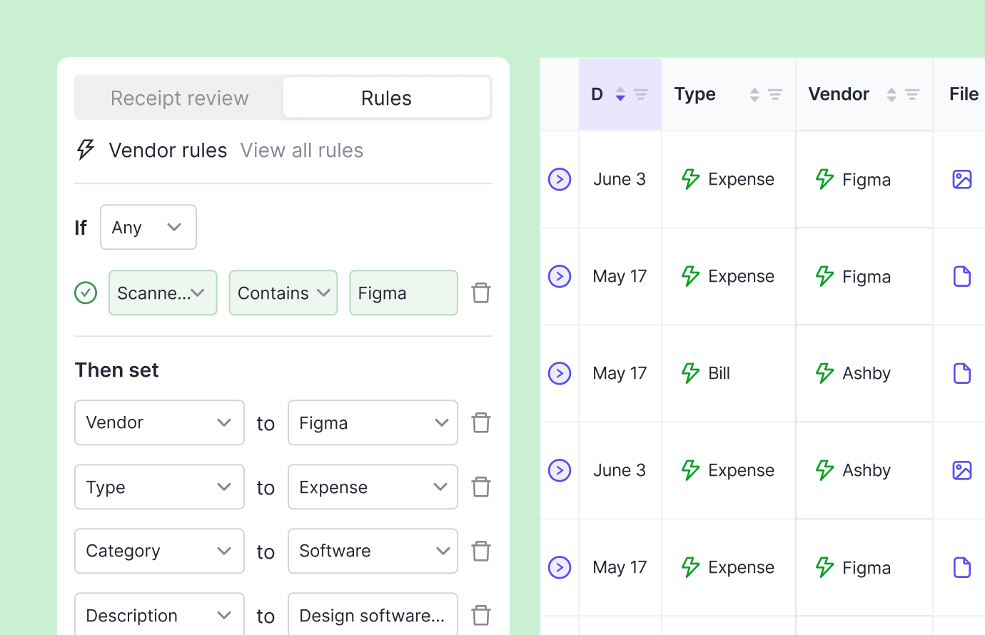 Double's OCR engine extracts data from the uploaded receipts. Using rules and AI, Double will offer coding suggestions based on what’s in the ledger.
